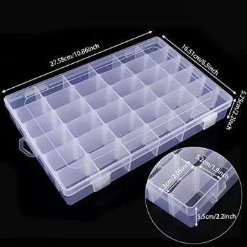 Show moreIntroducing the BAKHUK 4 Pack 36 Grids Clear Plastic Organizer Box—a perfect solution for all your organizational needs! Whether you’re sorting out jewelry, storing craft supplies, or packing snacks for the kids, these versatile containers are designed to keep your items neatly arranged and easily accessible. With a total of four boxes, each featuring 36 customizable compartments, this set offers unmatched flexibility for your various storage requirements. The durable construction ensures that they withstand regular use, making them the ideal choice for anyone looking to simplify their storage solutions.