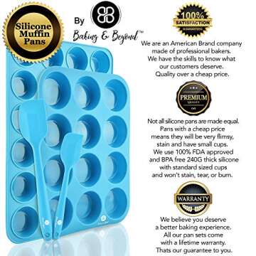 Baking & Beyond Premium Silicone Muffin Pan - Non Stick Silicone Cupcake Pan - 12 Cup Muffin Tray, 24 Cups Mini Cupcakes Pans - Silicon Muffin Molds - Silicone Baking Set - 2 Spatulas - Recipe E-book
