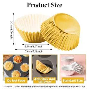 Baking Cups Cupcake Liners Baking Cups for Cupcakes Paper and Muffins, 50-Count, Standard (Bright Gold)