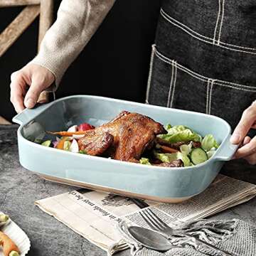 Baking Dishes Rectangular Bakeware Set Ceramic Baking Pan Lasagna Pans for Cooking Kitchen Cake Dinner Banquet and Daily Use - 13.8 x 9.5 Inches