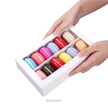 BAKIPACK 12 Macaron Boxes, Macaron Gift Box for 12, (Interior Mesurement 7.25×4 ×1.8 Inches), Macaron Packaging Boxes with Clear Window White without Macarons inside