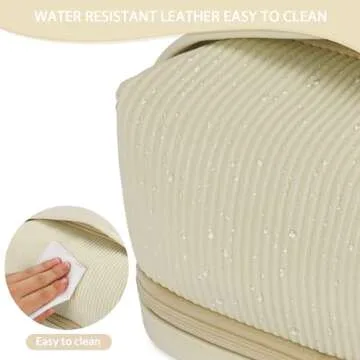 BAKLUCK Travel Makeup Bag Double Layer Large Capacity Makeup bag for Women, Cream PU Leather Toast Makeup Bag with Makeup Brush Compartment, Makeup Bag for Girls Travel Portable Beige Makeup Bag