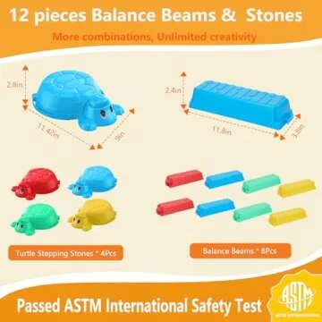 Balance Beams Stepping Stones For Kids - 12 Piece Turtle Jumping Stepping Stones Balance Beams, Toddler Indoor or Outdoor Play Obstacle Course, Sensory Play for Active Kids Ages 2 3 4 5 6 Year Old
