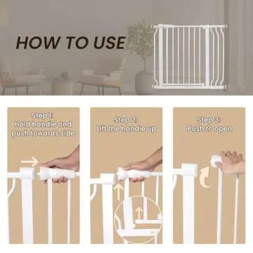 The gate features a unique 3-step opening mechanism that keeps both curious toddlers and pets guessing, effectively preventing unintended access to restricted areas. Its versatility is highlighted by the ability to swing open both ways, making it effortless for adults to walk through while still ensuring the safety of little explorers and furry friends alike.