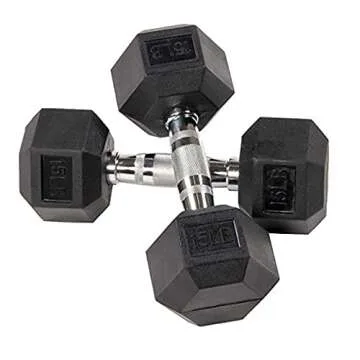 Show moreUnleash your potential with the Balancefrom Rubber Encased Hex Dumbbells, 15LB, Pair! Perfectly crafted to elevate your fitness routine, these premium dumbbells are ideal for beginners and seasoned athletes alike. Each dumbbell is meticulously designed with a solid cast for durability and encased in rubber to provide a safe and reliable workout tool. Not only do they prevent damage to your floors, but they also offer a sleek and stylish look for any home gym setting. With ergonomically contoured handles featuring a textured grip, you can be sure of a secure hold that minimizes slippage during even the most vigorous workouts.
