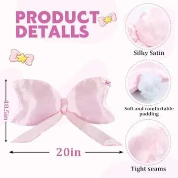 BALAPET Bow Pillow,Big Bow Satin Throw Pillow,Silky Satin Bow Pillow Pure Love Style Bow Pillows Decorative Suit for Teenage Girl's Room Decoration Nursery Decor(Pink)