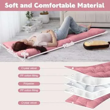 BALAPET Floor Lounger Pillow,Foldable Light Thick Tufted Floor Pillow Cushion with Elasticized Webbing for Easy Storage.Floor Lounger for Meditation,Playing,Yoga,Reading,Sleeping(Blush)