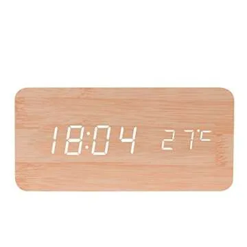 BALDR Wooden Digital Alarm Clock, Bamboo Wood White Light
