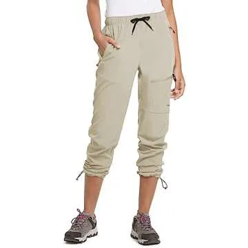 BALEAF Women's Hiking Pants Quick Dry Water Resistant Lightweight Joggers Pant for All Seasons Elastic Waist Suntan Size XL