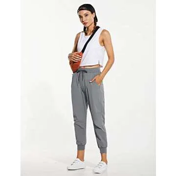 BALEAF Women's Quick Dry Hiking Pants Lightweight Drawstring Joggers Zipped Pockets Running Workout Pants Dim Gray XS