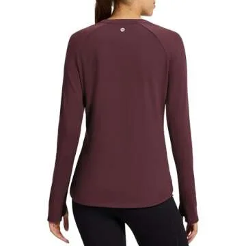 BALEAF Women's Thermal Tops Fleece Lined Shirts Long Sleeve Cold Weather Running Gear Workout Zipper Pocket Thumbholes Wine Red M