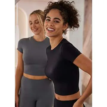 BALEAF Womens Shirt Basic Workout Crop Tops Fitted Round Neck, Yoga Casual Slim Fit T-Shirts, Black, Large, Short Sleeve