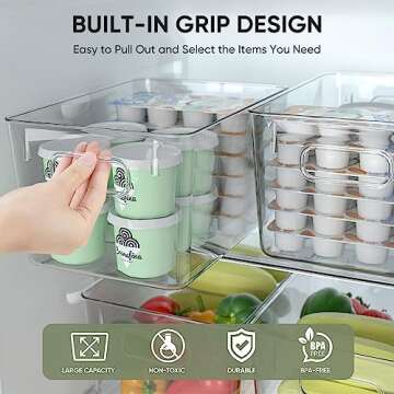 BALEINE 8PK PET Plastic Storage Bins, Fridge Space Saving Organizer, BPA Free Pantry Storage, Cabinet Organizers, Cleaning Supply Storage Bins (8PK)