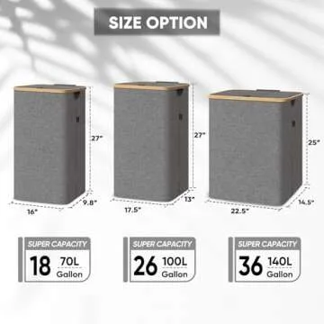 BALEINE Laundry Hamper with Lid, Tall Laundry Baskets with Bamboo Pull Handles, Large Laundry Bin with Internal Support (26 Gal/100L, Black)