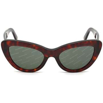 Show moreStep into the spotlight with the Balenciaga BA0129-54N Sunglasses, a stunning accessory that redefines fashion and functionality. With a captivating Red Havana frame and striking green lenses, these sunglasses effortlessly combine luxury and flair. Designed for those who value style and quality, the 53mm lens width offers a perfect balance between comfort and coverage, making them ideal for any occasion. Their sophisticated design showcases Balenciaga's renowned craftsmanship while ensuring you stand out from the crowd.