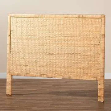 Show moreTransform your bedroom into a serene oasis with the Bali & Pari Adelyn Natural Rattan Headboard. Expertly crafted from premium Mahogany Wood and adorned with Naturally Woven Rattan embellishments, this king-sized headboard perfectly encapsulates elegance and tropical charm. Its chic design not only enhances the visual appeal of your room but also serves as a remarkable statement piece, blending seamlessly with various decor styles—from coastal to bohemian. Whether you're updating your current setup or looking for a fresh aesthetic, this headboard is fully assembled, making your installation a breeze.