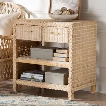 bali & pari Lanica Japandi Sun Bleached Rattan 2-Drawer Console Table