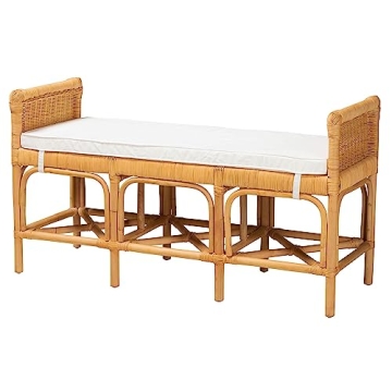 Show moreIntroducing the Bali & Pari Nairi Natural Rattan Accent Bench, a unique piece that brings the beauty of coastal elegance into your home. Crafted from premium natural rattan, this bench showcases a stunning light honey hue that effortlessly enhances any decor while providing a comfortable seating solution. With dimensions of 48.00" W x 17.50" D x 26.00" H, and seating space measuring 44.50" W x 17.10" D x 20.10" H, it perfectly balances style and function. This accent bench is fully assembled, allowing you to enjoy its beauty right out of the box. The thoughtful design includes a removable cushion padded with foam and upholstered in fabric, ensuring that comfort is never compromised.