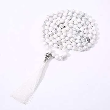 BALIBALI 108 Mala Beads Necklace Semi-Precious Gem Stones Meditation Necklace 108 Hand Knotted Japa Mala Beaded Tassel Necklace with Tree of Life Pendant