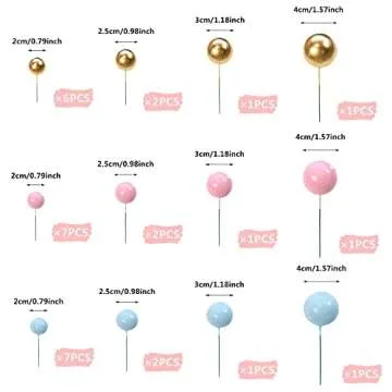Ball Cake Topper Ball Cake Picks Colorful Pearl Ball Shaped Cupcake Insert Cake Topper for Bear Theme Birthday Party Favors Wedding Decoration Supplies (Gold Pink Blue)