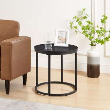 Ball & Cast End, Modern Round Accent, Faux Marble Side-Table with Metal Frame for Small-Space, 15.25" Dia Black