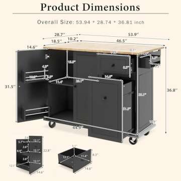 Ball & Cast Kitchen Island with Trash Can Storage Cabinet,Kitchen Cart W/ Drop Leaf,Spice Rack,Towel Rack and Drawers,Rolling Kitchen Islands on Wheels W/ Adjustable Shelf for Dining Room,Black