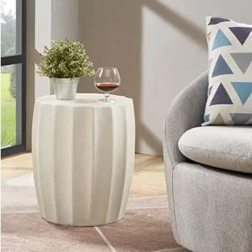 Ball & Cast Modern End Table Light Weight Concrete Accent Side Table, White