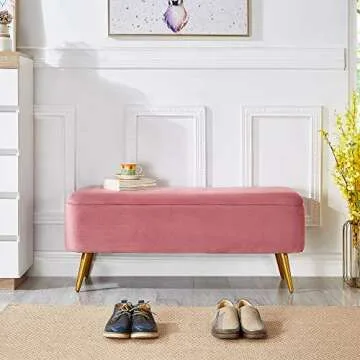 Ball & Cast Upholstered Velvet Storage Bench 44"W x 16"D x 18"H Rose,Golden Powder Coating Legs Set of 1