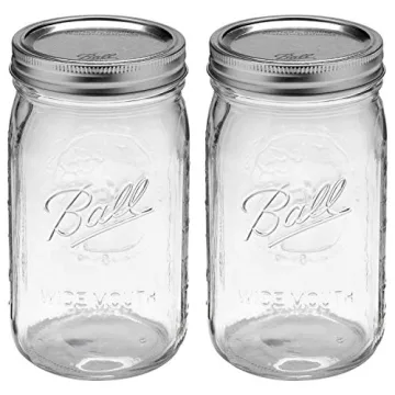 Ball Wide Mouth 32-Ounces Quart Mason Jars with Lids and Bands, (2 Jars)