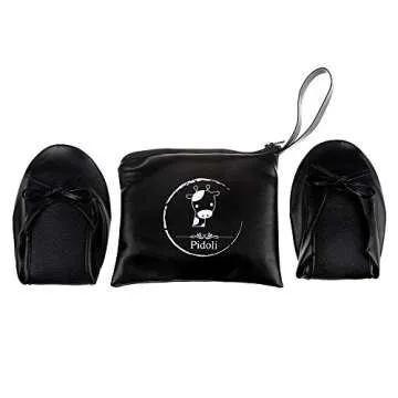 Ballet Flats Shoes -Women's Foldable Portable Travel Roll Up Shoes with Pouch (Black, 9.5)