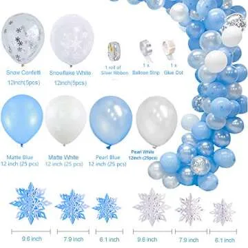 Balloon Garland Arch Kit 16Ft Long Ice Snow Blue White Silver Latex Balloons Pack for Wedding Birthday Baby Shower Bachelorette Party Backdrop Decorations