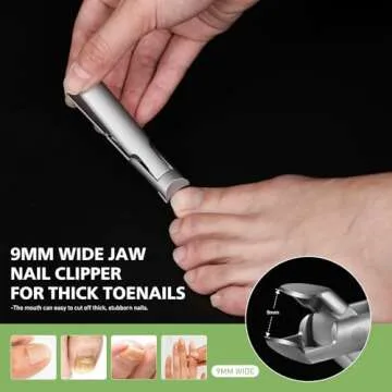 BALUCA 9mm Wide Jaw Opening Curved Finger Toe Nail Clippers with Catcher - Anti Splash Extra Large Toenail Clipper for Thick Nails, Nail Cutter Trimmer for Seniors, Men and Women