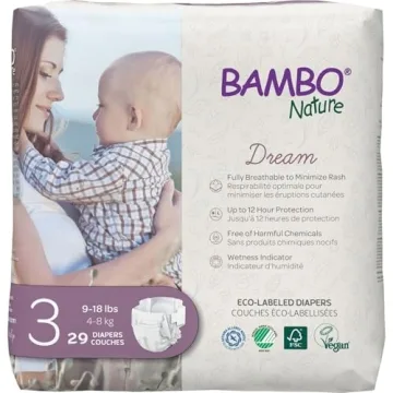 Show more Introducing Bambo Nature Hypoallergenic Baby Diapers—a premium choice for parents who value both performance and sustainability. Designed with your baby's comfort in mind, these eco-friendly diapers combine effectiveness and care, ensuring that your little one stays dry and happy. With over 35 years in production, Bambo Nature is a legacy brand that you can trust to provide high-quality, skin-safe products for your family. Each package contains 174 diapers in size 3, fitting babies weighing between 9-18 lbs, so you can focus on what truly matters: nurturing your child.