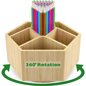 Show moreIntroducing the innovative Houtigmaan 360-Degree Revolving Pencil Holder, a must-have accessory for anyone who values organization and accessibility. Made from 100% natural bamboo, this eco-friendly storage solution not only enhances your workspace but also promotes a healthier environment. This unique pencil holder features a revolving design that allows you to easily access your stationery with a simple spin. Whether you’re a student, artist, or office worker, this is the ideal tool to keep your essentials tidy and at hand, providing a seamless and efficient experience while you create or work.