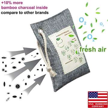 Show more Experience the power of nature with our Bamboo Charcoal Air Purifying Bags. These eco-friendly bags are designed to eliminate odors and absorb moisture effectively, making them perfect for various spaces including refrigerators, cars, closets, and more. Each bag contains 220 grams of activated charcoal, which naturally purifies the air around it, ensuring that your environment remains fresh and pleasant. The unique porous structure of bamboo charcoal captures impurities and prevents unpleasant smells, making it an essential addition to any household.