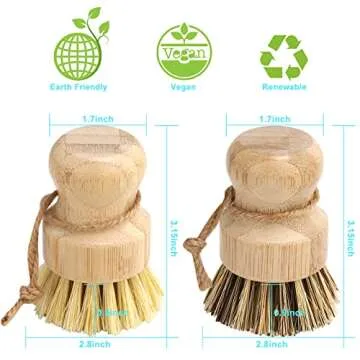 Show moreIntroducing the Bamboo Dish Brush Set by Aisuly, a remarkable eco-friendly cleaning solution that brings both efficacy and sustainability into your kitchen routine. Crafted from premium organic bamboo, this 4-piece set showcases nature's finest materials while ensuring your cleaning tasks are met with the highest level of performance. Each brush is thoughtfully designed, featuring two dark bristle brushes made from a durable blend of bamboo and union fibers, paired with two softer brown bristle brushes utilizing sisal for gentle yet effective scrubbing. This combination makes it perfect for any kitchen task, whether you're scrubbing pots or washing delicate glassware.