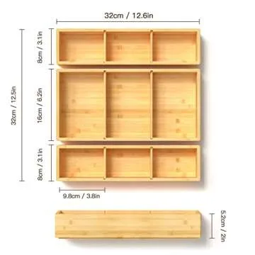 Bamboo Drawer Organizer 12.5'' X 12.5'' X 2'', Adjustable 3 Individual Junk Drawer organizer for Bathroom and Kitchen, Wood Drawer Organier Boxes for Jewellery, Make up and Tea Bag