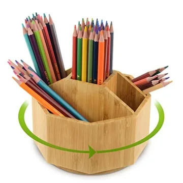 Bamboo Rotating Art Supply Desk Organizer – 5 Compartment Storage Caddy