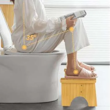 Show more Enhance your bathroom experience with the elegant and functional bamboo toilet stool, designed to cater to individuals of all ages and physical abilities. This remarkable stool measures approximately 39 x 22 x 16.5 cm (15.35 x 8.66 x 6.5 inches) and stands at a comfortable height of 6.5 inches, making it the perfect accessory for everyone—from children to elderly individuals and even pregnant women. Not only does it serve practical purposes, but it also adds a touch of sophistication to your bathroom decor.