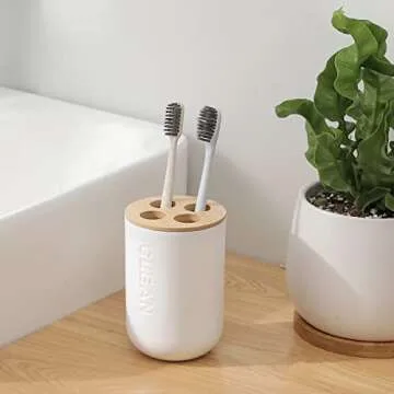 Bamboo Toothbrush Holders for Bathroom Countertop Storage Organizer - Home Decor - Four Divided Compartments, White