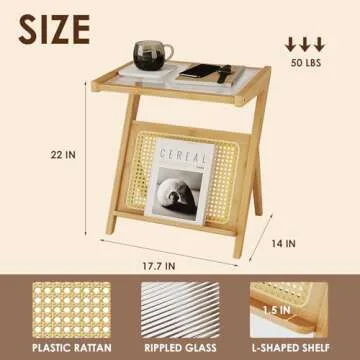 Bamworld Rattan Side Table Boho Night Stand Glass Bedside Small End Tables Bamboo Bedroom Coffee Table with Storage for Living Room and Outdoor Nature