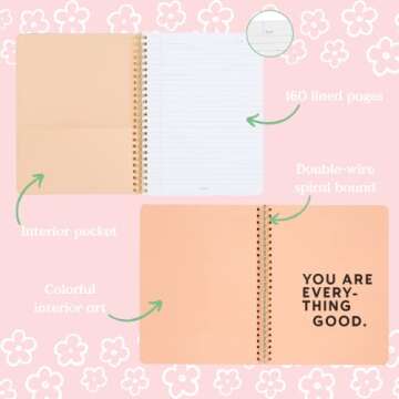 ban.do Floral Rough Draft Mini Spiral Notebook, 8.5" x 6.75" with Pockets and 160 Lined Pages, Paradiso