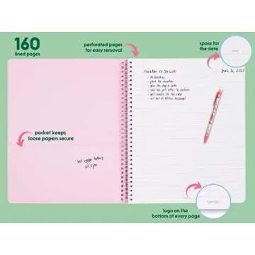 ban.do Rough Draft Large Spiral Notebook, 11" x 9" with Pockets and 160 College Rules Pages, I am very busy (pink/holographic)