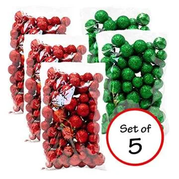 BANBERRY DESIGNS Red and Green Foam Balls 5 Bags Set of Glittered Vase Filler Decorative Balls Table Scatter Decorations Party Accessories Glittery Colored Snow Balls Balls Range 3/8" to 3/4" D.