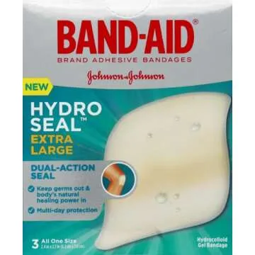 Show moreIntroducing the Band-Aid Brand Hydro Seal Adhesive Hydrocolloid Gel Bandages – your ultimate solution for fast and effective wound care and blister relief. This exceptional 3-count pack features extra-large bandages designed specifically for all-purpose protection. Crafted from durable and semi-translucent materials, these bandages effortlessly blend with your skin, providing discreet yet reliable coverage. They are not just ordinary bandages; they are waterproof, allowing you to engage in daily activities freely, whether it’s washing your hands or taking a shower. With a design that promotes healing while protecting the wound from external influences, the Hydro Seal bandages are an essential addition to your first aid kit.