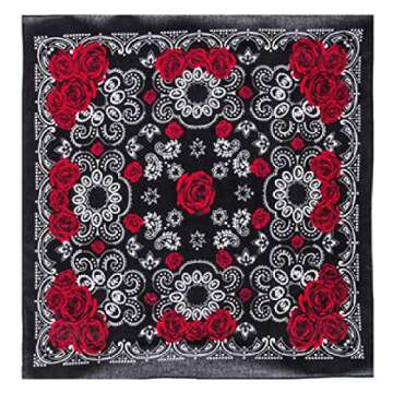 Bandanna Black White Rose Rock Star ~ Wearable Art 100% Cotton -