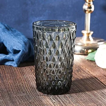 Show more Introducing the Bandesun Gray Drinking Glass Set, a stunning collection of six premium black tumblers that effortlessly blend elegance with functionality. Each glass, holding 12 ounces, showcases a unique diamond pattern that not only adds aesthetic appeal but enhances your drinking experience. Crafted from high-quality lead-free glass, these tumblers are designed to be healthy, safe, and long-lasting. The rich gray color is embedded within the glass, ensuring that it won't fade over time, maintaining its vibrant look even after years of use.