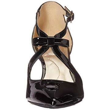 Show moreStep into elegance with the Bandolino Women's Zeffer Pump. This polished black patent leather shoe is the epitome of sophistication, featuring a stylish pointed toe and a delightful center bow that adds a playful touch to your ensemble. With a heel height of 2 inches, it delivers just the right amount of elevation, making it ideal for both day-to-night wear. The lightly padded footbed ensures that while you look fabulous, you also stay comfortable all day long. Handcrafted from 100% premium patent leather, these pumps offer a luxurious feel and an attractive shine that will enhance any outfit.