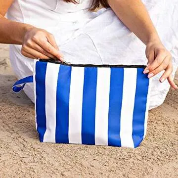 BANG&CARSEN Large Makeup Bag For Women - XL Travel Cosmetic Bag Waterproof Pouch - Wristlet Makeup Clutch For Beach Use - Wet Suit Bag Bikini Storage Pouch (blue)