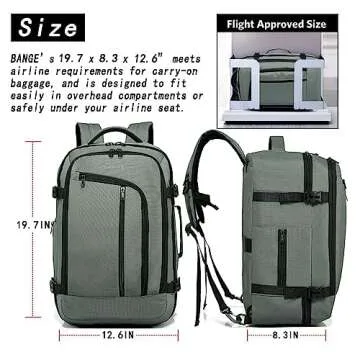 Show moreThe BANGE Travel Overnight Backpack is a remarkable solution for travelers seeking style, functionality, and rugged durability all in one. This 40-liter carry-on backpack is FAA flight approved, making it a perfect companion for air travel. With its dimensions of 19.7 x 8.3 x 12.6 inches, it conveniently fits under airline seats and in overhead compartments. The sleek design and multiple compartments make it incredibly versatile, appealing to business travelers, casual adventurers, and students alike.